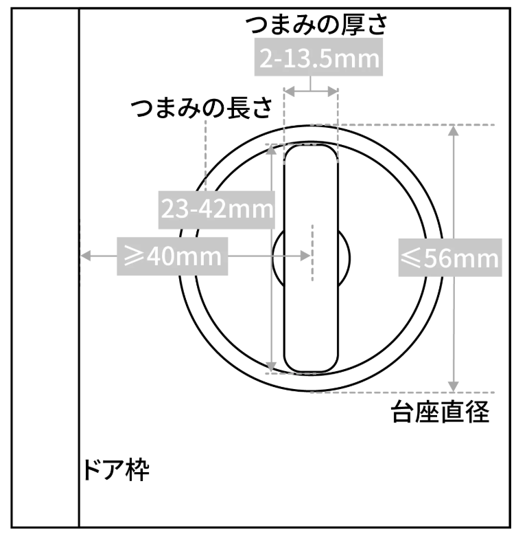 サムターン形状 | 内側つまみが回転式か? | ノブ型や引き戸は非対応 |